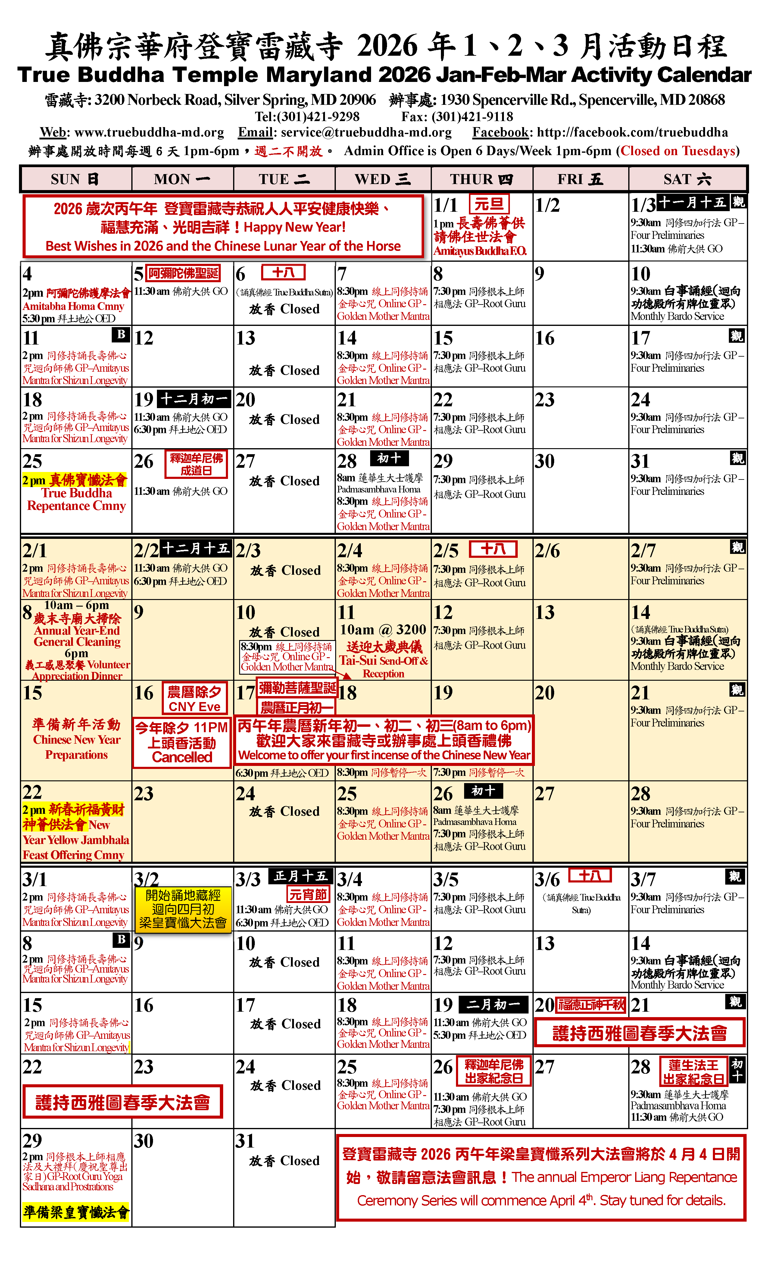 登寶雷藏寺奉隨根本上師蓮生活佛盧勝彥教導,參加一切活動不需任何費用,對寺廟和上師、法師的供養也是隨意。竭誠歡迎大華府地區各界善信前來共沐佛光共霑法益。