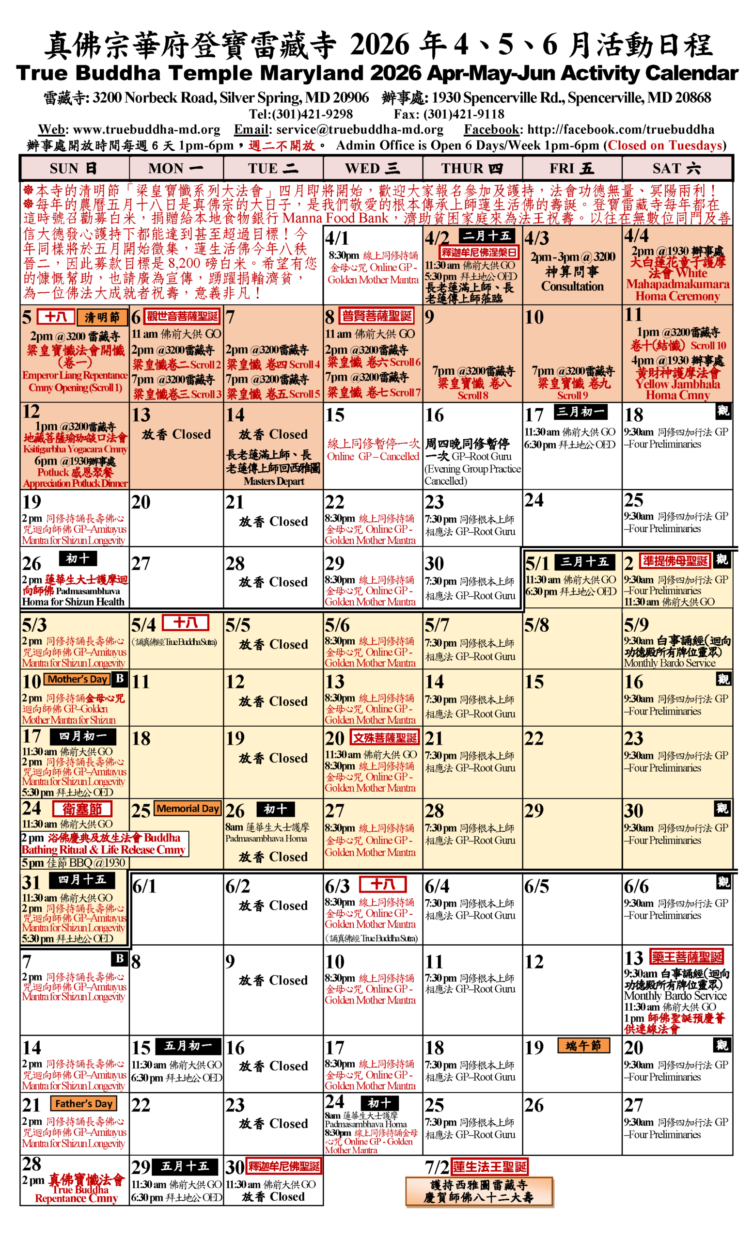 登寶雷藏寺奉隨根本上師蓮生活佛盧勝彥教導,參加一切活動不需任何費用,對寺廟和上師、法師的供養也是隨意。竭誠歡迎大華府地區各界善信前來共沐佛光共霑法益。